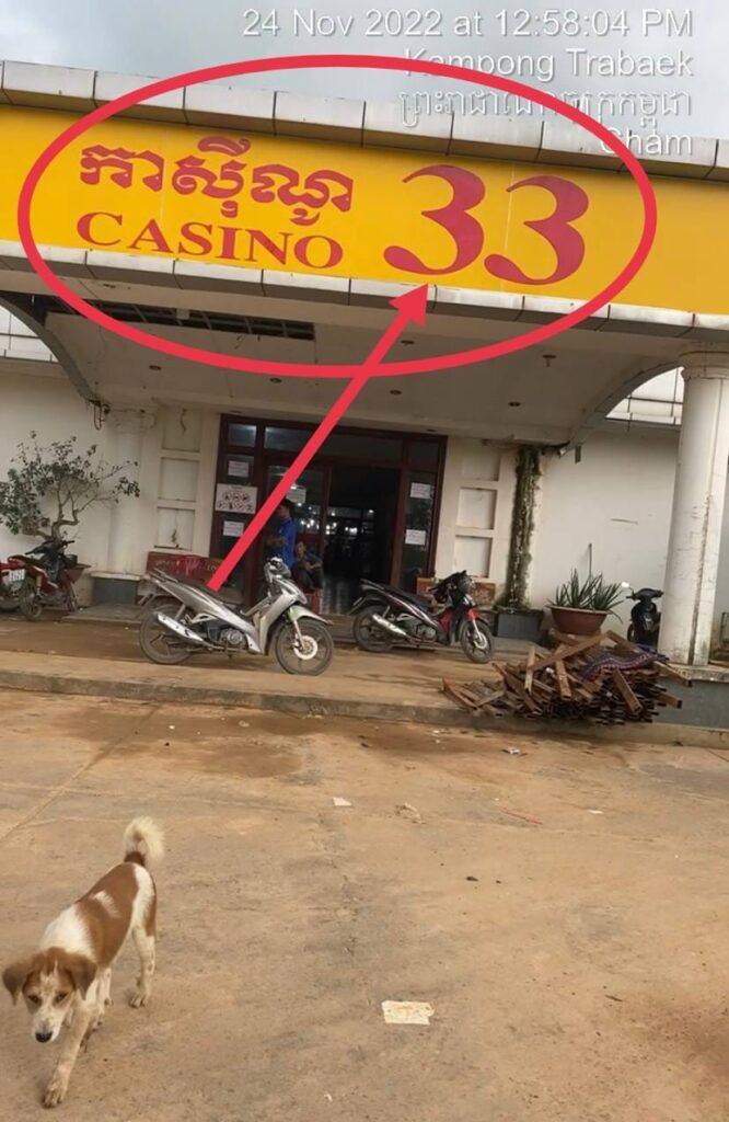 ខេត្តព្រៃវែង៖ តាមប្រភពពីប្រជាពលរដ្ឋដែលរស់នៅក្បែរ” កាស៊ីណូ “៣៣” ច្រកព្រំដែនស្វាយអាង៉ោងដែលស្ថិតនៅក្នុងភូមិចាម ឃុំចាម ស្រុកកំពង់ត្របែកបានអោយដឹងថា កាស៊ីណូ”៣៣” ច្រកព្រំដែនស្វាយអាង៉ោងនៅតែបន្តបើកអោយពលរដ្ឋខ្មែរចូលលេង ល្បែងស៊ី សងយ៉ាងគគ្រឹក គគ្រេង រីឯអាជ្ញាធរនិងសមត្ថកិច្ចជំនាញពាក់ព័ន្ធក្នុងមូលដ្ឋាន រក្សាភាពស្ងៀមស្ងាត់។